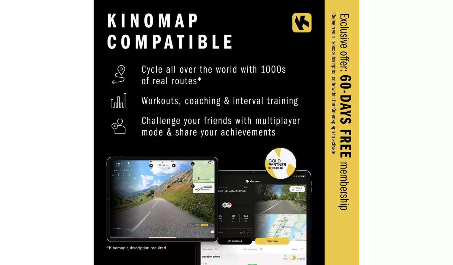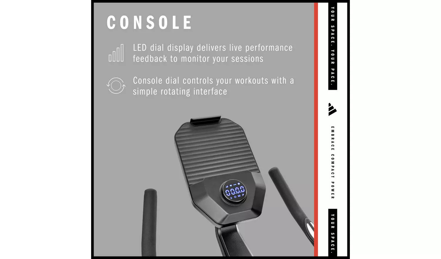 • Adidas Console+ opens a gateway to the global cycling community. Enabling Zwift* and Kinomap compatibility, take on challenges and conquer virtual terrains. Alongside bonus pre-set workouts, Console+ provides detailed reports, and syncs with health-tracking platforms.