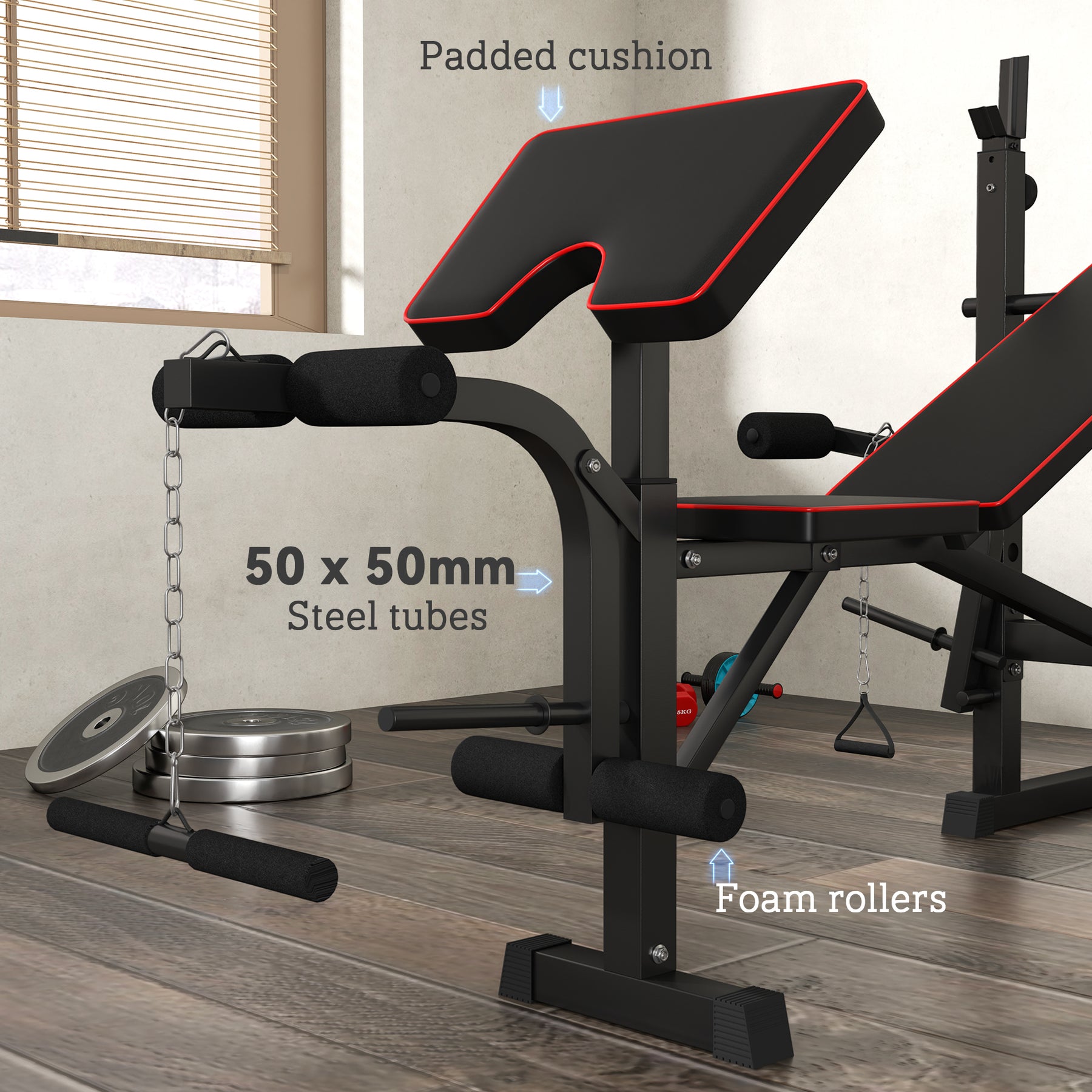 SPORTNOW Folding Weight Bench with 2 Barbell Rack and Preacher Curl Bench
