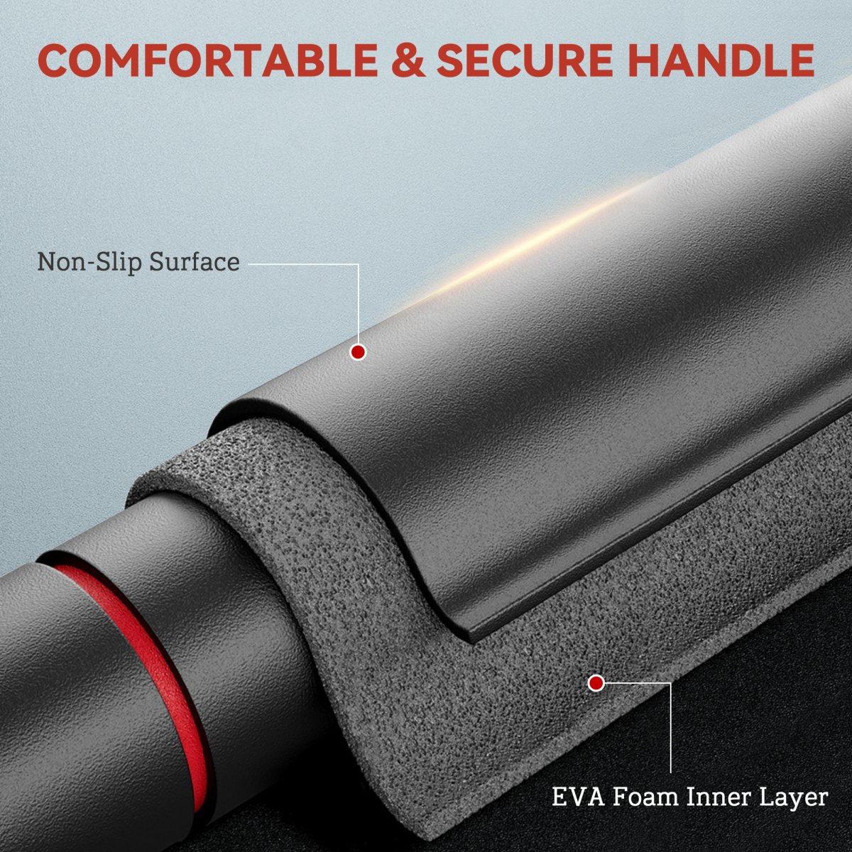 ● Non-slip EVA foam handles enhance grip comfort