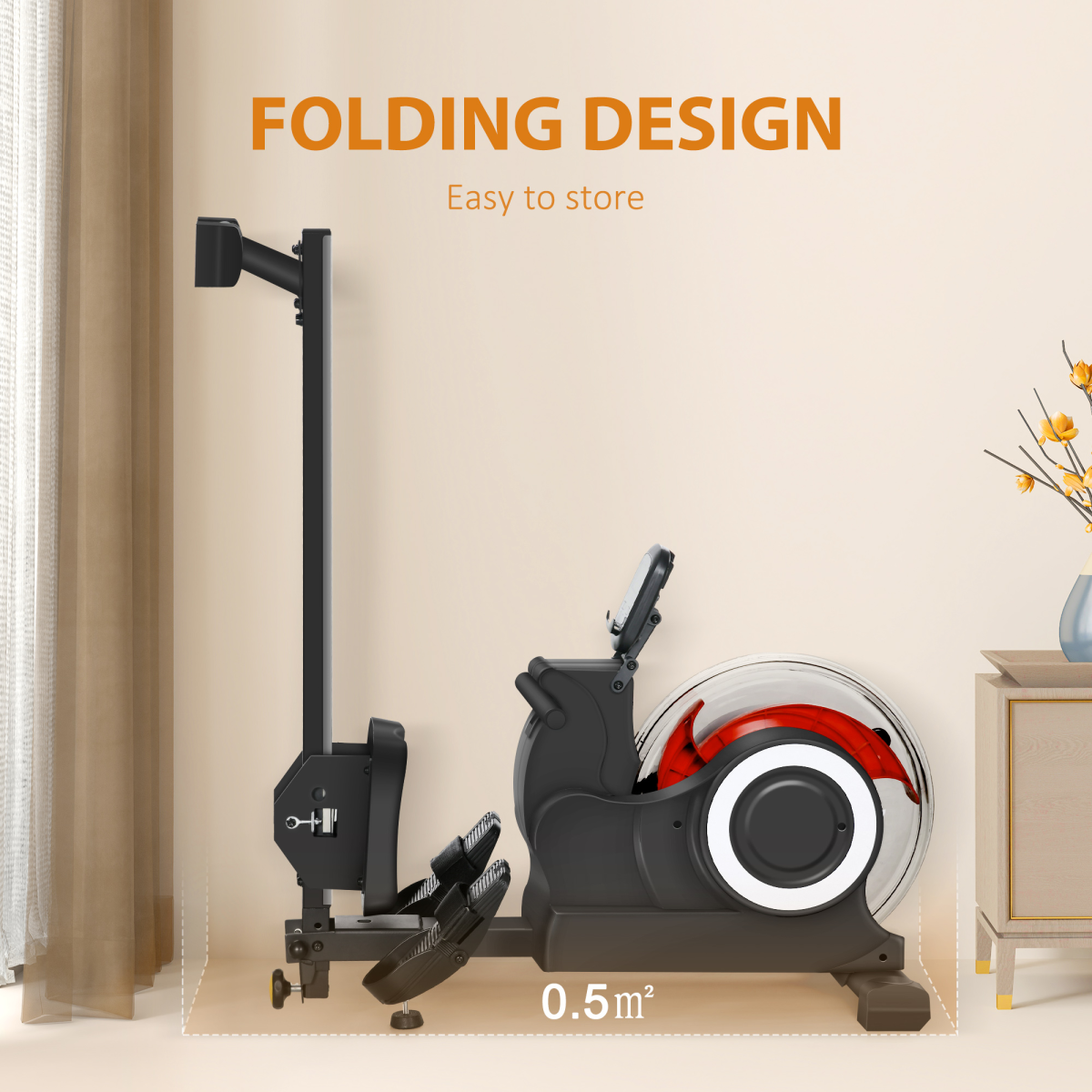 SPORTNOW Foldable Water Rowing Machine with Wheels and LCD Monitor, Black