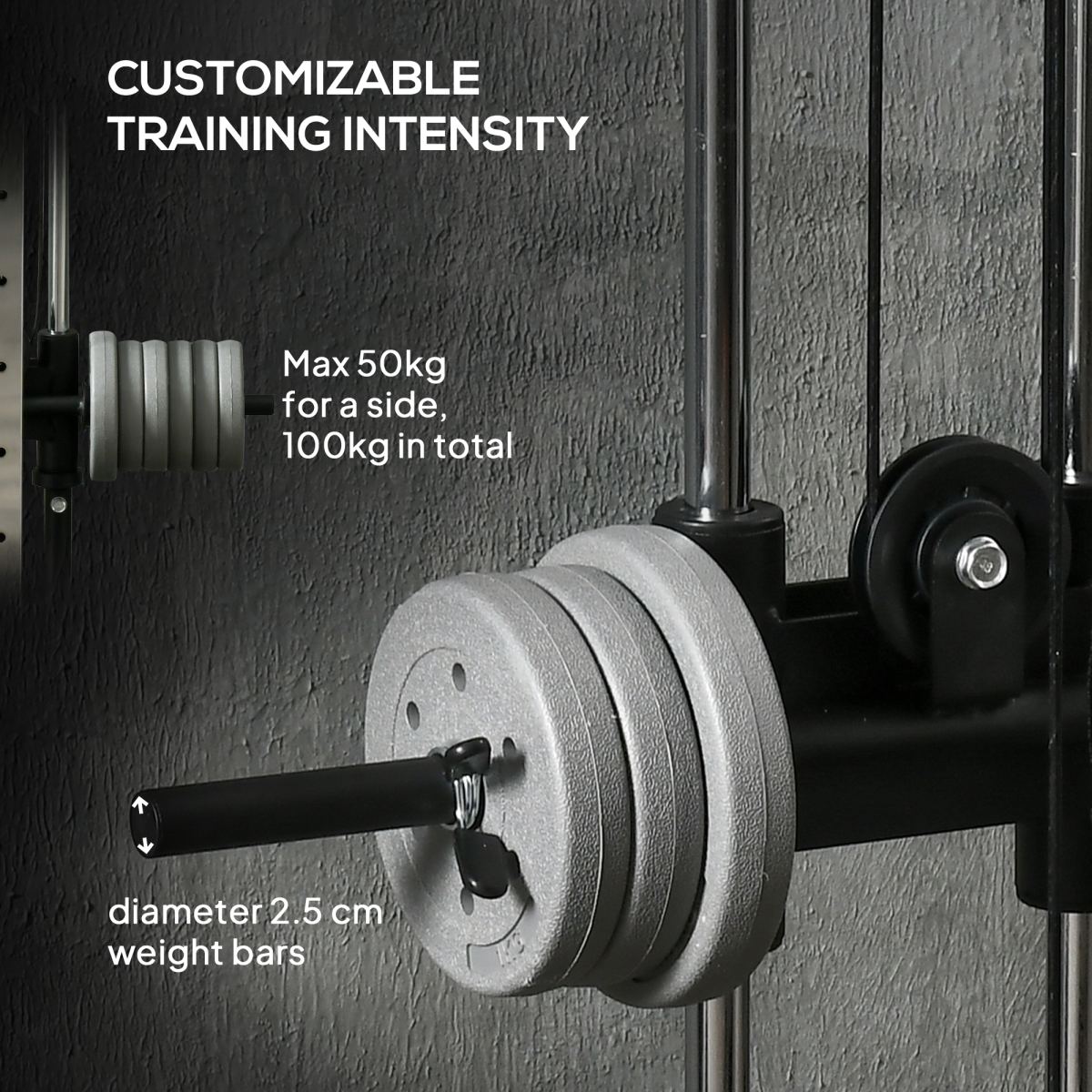 SPORTNOW Wall Mount Cable Station with 15 Positions Adjustable Dual Pulleys