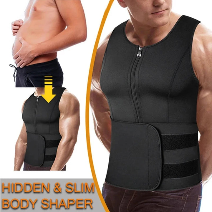 Men's Body Shaper Waist Trainer Sauna Vest Double Belt Sweat Shirt