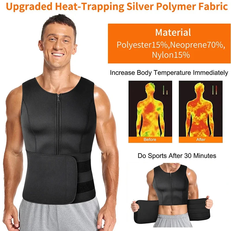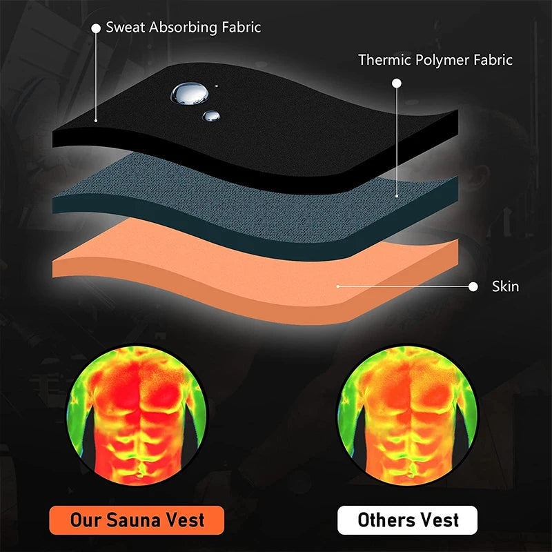 Men Sauna Sweat Vest: SWEAT THREE TIMES MORE Lightweight durable sweat neoprene fabric tones core by increasing thermal temperature and calorie burn to enhance your workout performance. This waist trainer vest will stimulate sweating around your abdomen and lower back area, accelerate the belly fat burning process and help you lose water weight to shape and reduce the waist and abdomen, and get a strong core and really great abs!