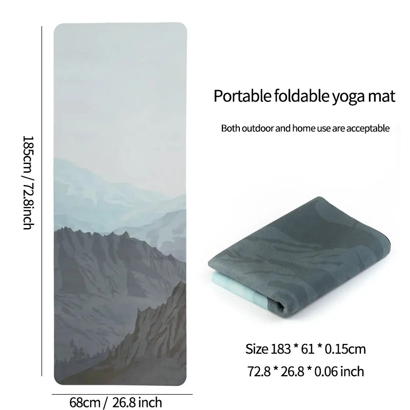 Travel Yoga Mat, Foldable Anti Slip Sports Suede Mat,Natural Rubber