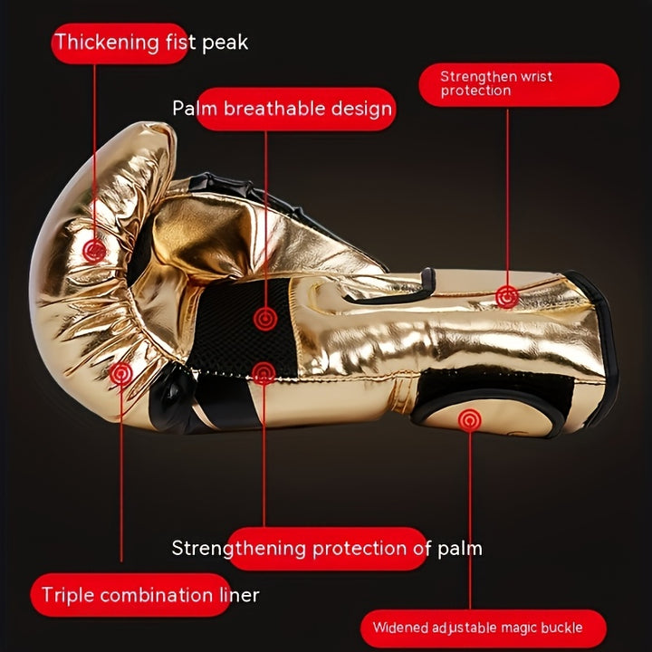 Yobenki Professional Boxing Gloves - Shock-Absorbing, Ideal for Muay Thai, Taekwondo & Combat Sports, Perfect for Beginners, Golden PU Material, Pull-On Closure, Boxing Bag, Best for Christmas, Perfect for Thanksgiving